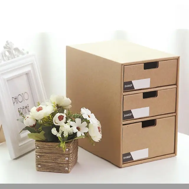 Discount Price Desktop File Storage Box Kraft Paper Desktop Storage Box Drawer Type Office Desk File Holder Removable Office Storage Supplies with FREE Shipping Worldwide!